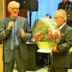 Der Steglitzer Bezirksverbands-vorsitzende Ralf-Jürgen Krüger (rechts) nahm Gratulation und Applaus zum Jubiläum vom Landeschef Michael Matthei entgegen.