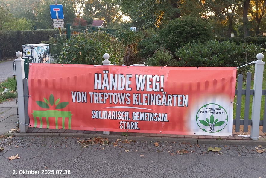 Im September 2025 hat der Landesverband Berlin der Gartenfreunde e. V. zur Solidarität mit dem Bezirksverband der Gartenfreunde Treptow und seinen Kleingartenvereinen aufgerufen. Worum geht es?